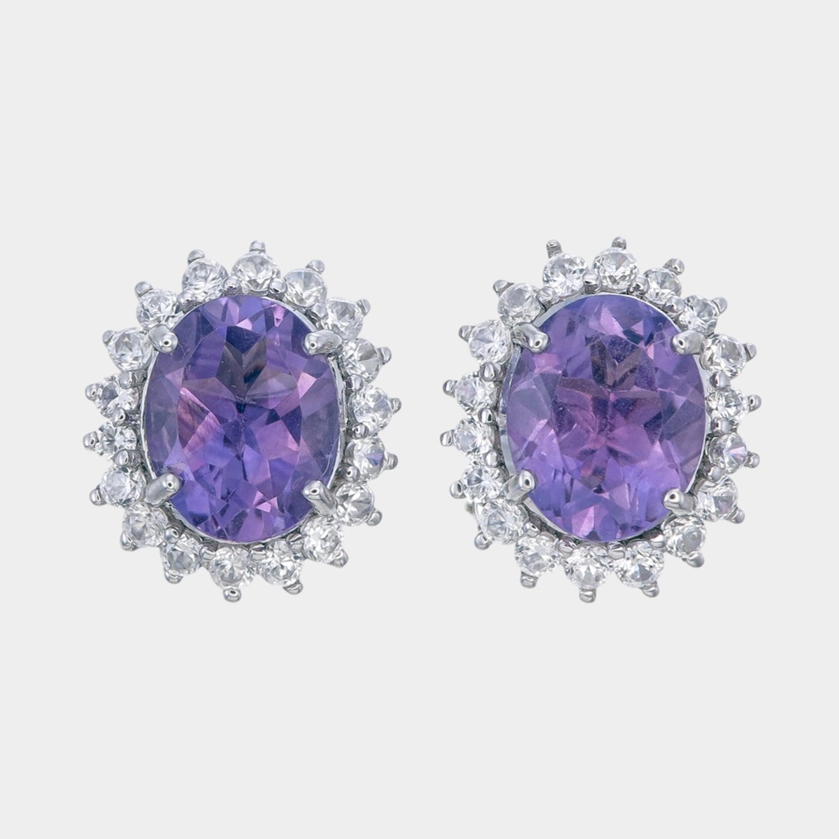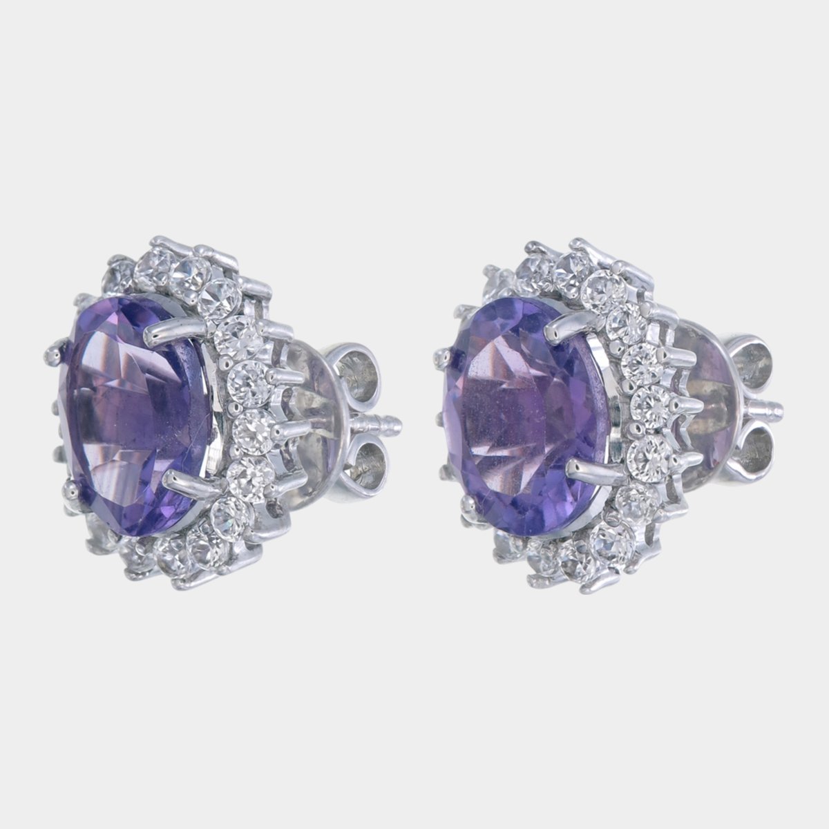 925 STERLING SILVER AMETHYST & MOISSANITE DIAMOND STUDS ERRINGS